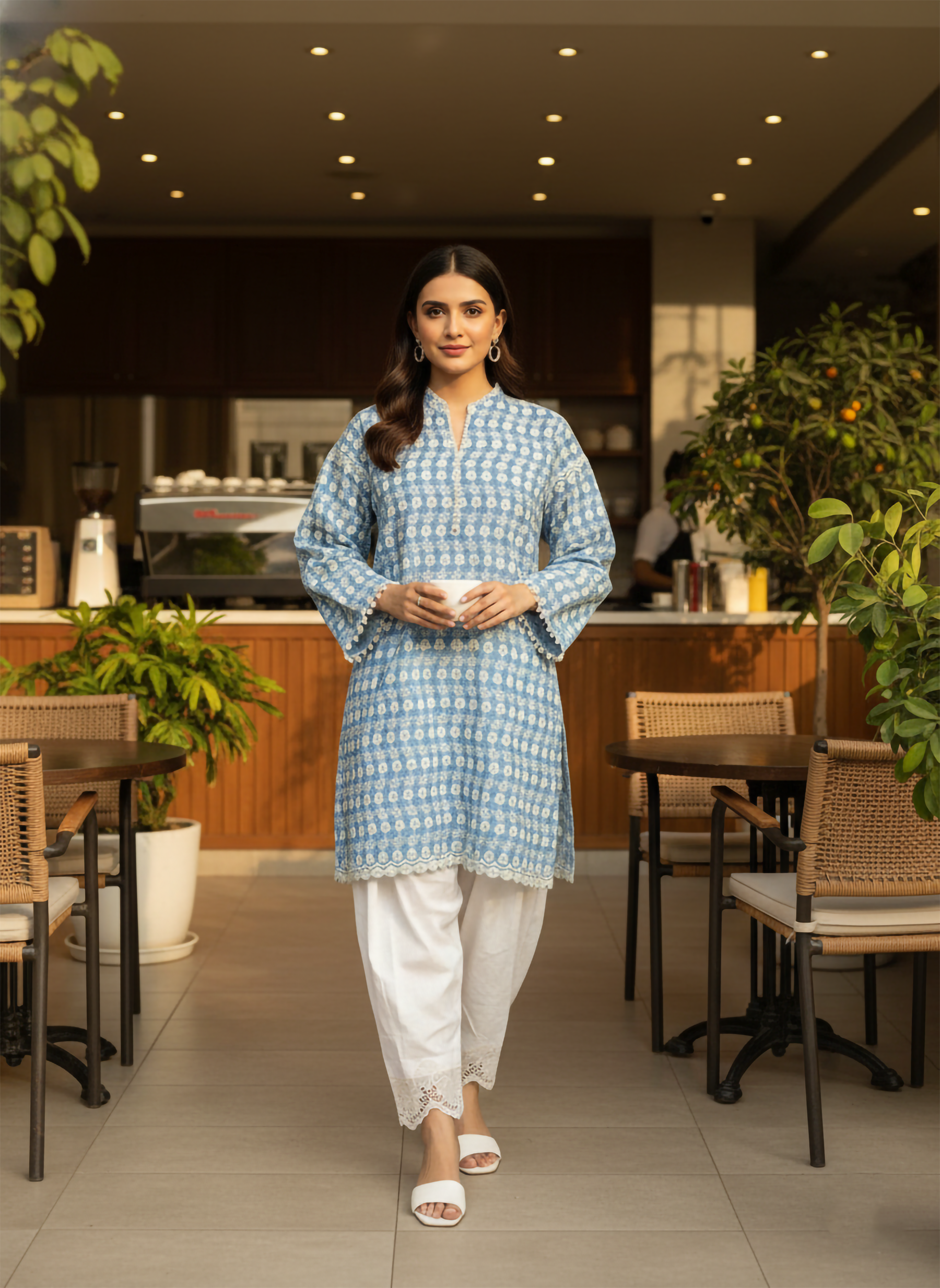 Introducing ‘Meherbano’ from our Blue Chikankari Collection — a perfect blend of elegance and tradition. This outfit features exquisite chikankari embroidery in blue and beige tones. Crafted from premium fabric with a basic cut for everyday sophistication. Pair it with our buttoned skinny shalwar to complete the chic, graceful look.